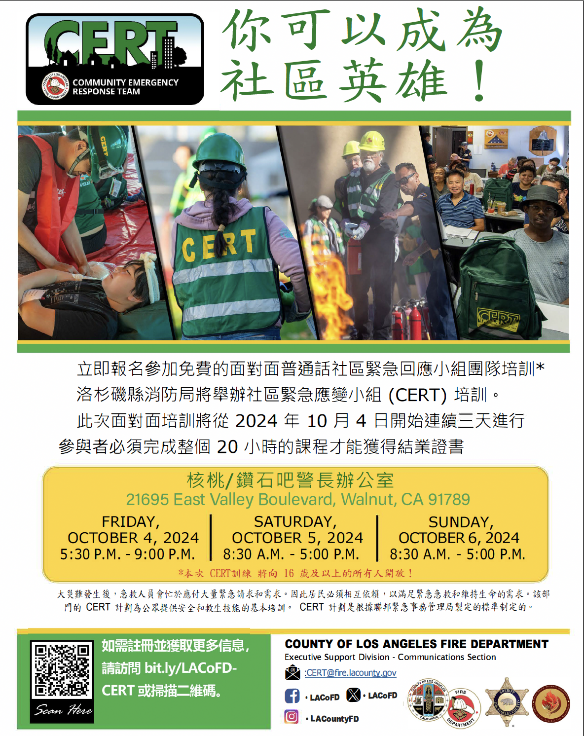 SIGN UP FOR A FREE IN-PERSON COMMUNITY EMERGENCY RESPONSE TEAM TRAINING IN MANDARIN!